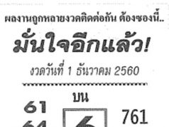 เลขเด็ด แผงดัง – มั่นใจอีกแล้ว งวด 1 ธันวาคม 2560